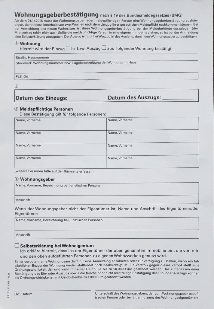 Before you can actually register your flat, you need two specific forms signed by you and your landlord: the flat registration and a personal information form. These are available at the Kundenzentrum upon request. If no one can speak English and the google translate option isn’t working well, show them this form! You should be good to go from there.