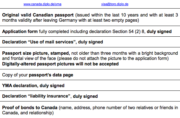 The German Missions in Canada has made a checklist to ensure you have everything needed before sending off your application. If any part of the application is incomplete or incorrect, it may be rejected without prior correspondence. Be diligent!